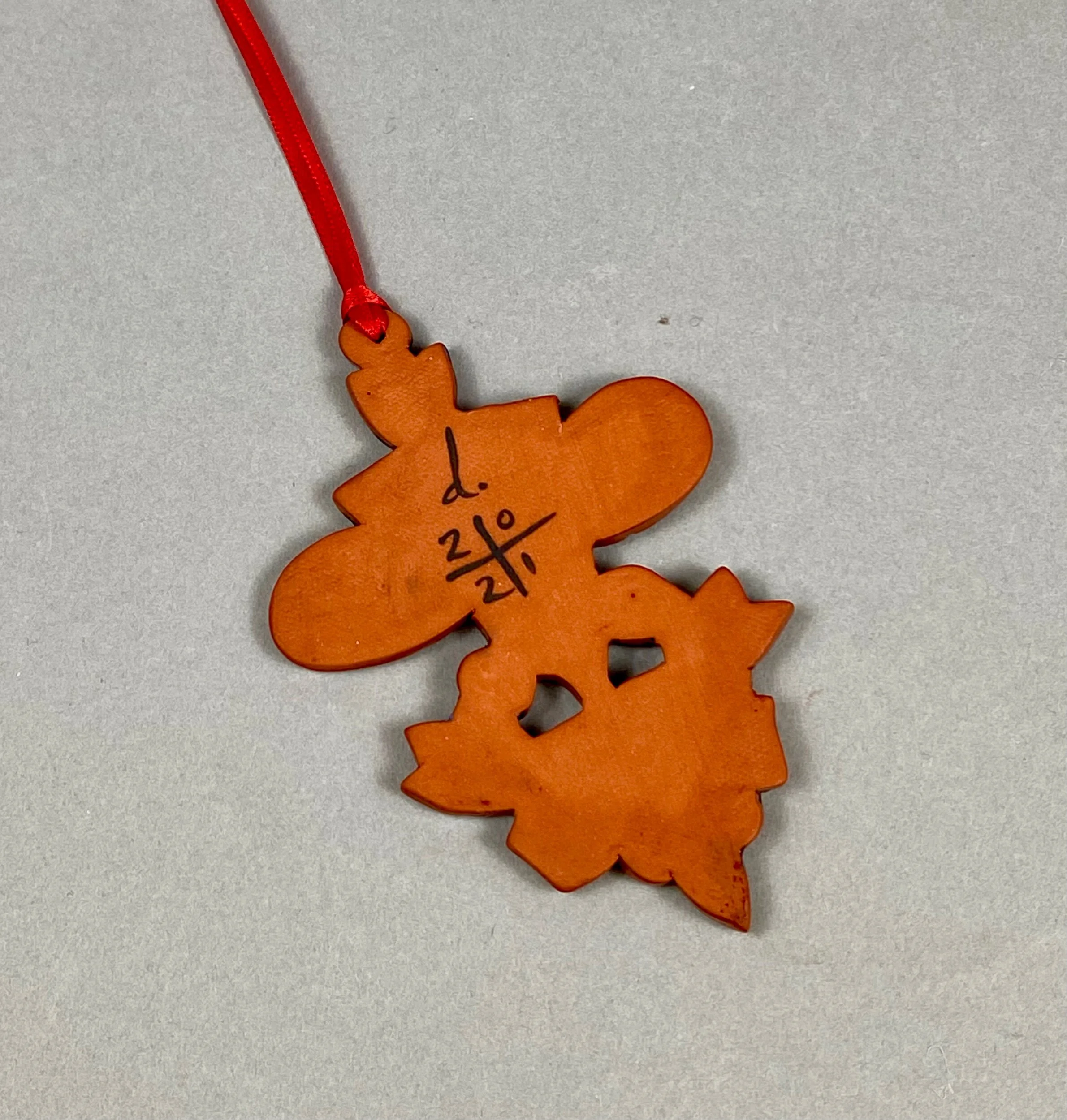 These terracotta ornaments have been hand made and painted by the artist in her Warren, R.I. Studio.