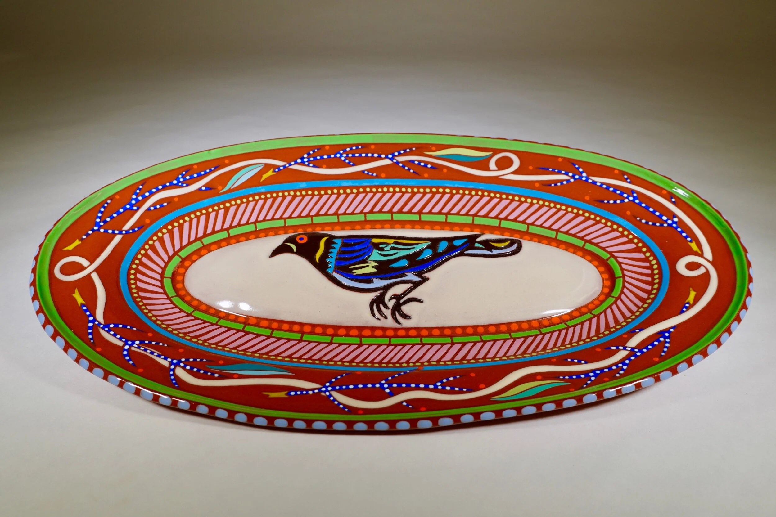 Raven is one of those pieces that catches your eye and holds your attention. She doesn’t get old or disappoint. This one of a kind terra-cotta platter will highlight your table as a serving dish or hang on your wall as ceramic graphic art. One unique piece, two distinct functions.